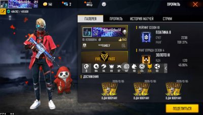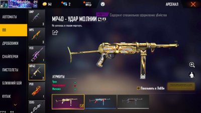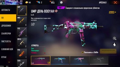 На акке есть: M4A1 FFCS, MP40 - удар молнии, Шмель, UMP День BOOYAH, Стена: Стражи, Скайлайн: Туман и др.