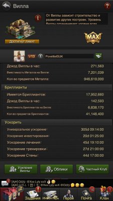 Ресурсов нераспакованных всех 900млн+ (бриллиантов мало 40млн), ускорений универс 305дней, инвестиций 20 дней.